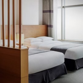 All our Deluxe rooms have big windows to help you take a broad view of the cityscape and nature. We offer bigger bed and every bathroom has bathtub and shower, which brings relaxation to you after a long day.